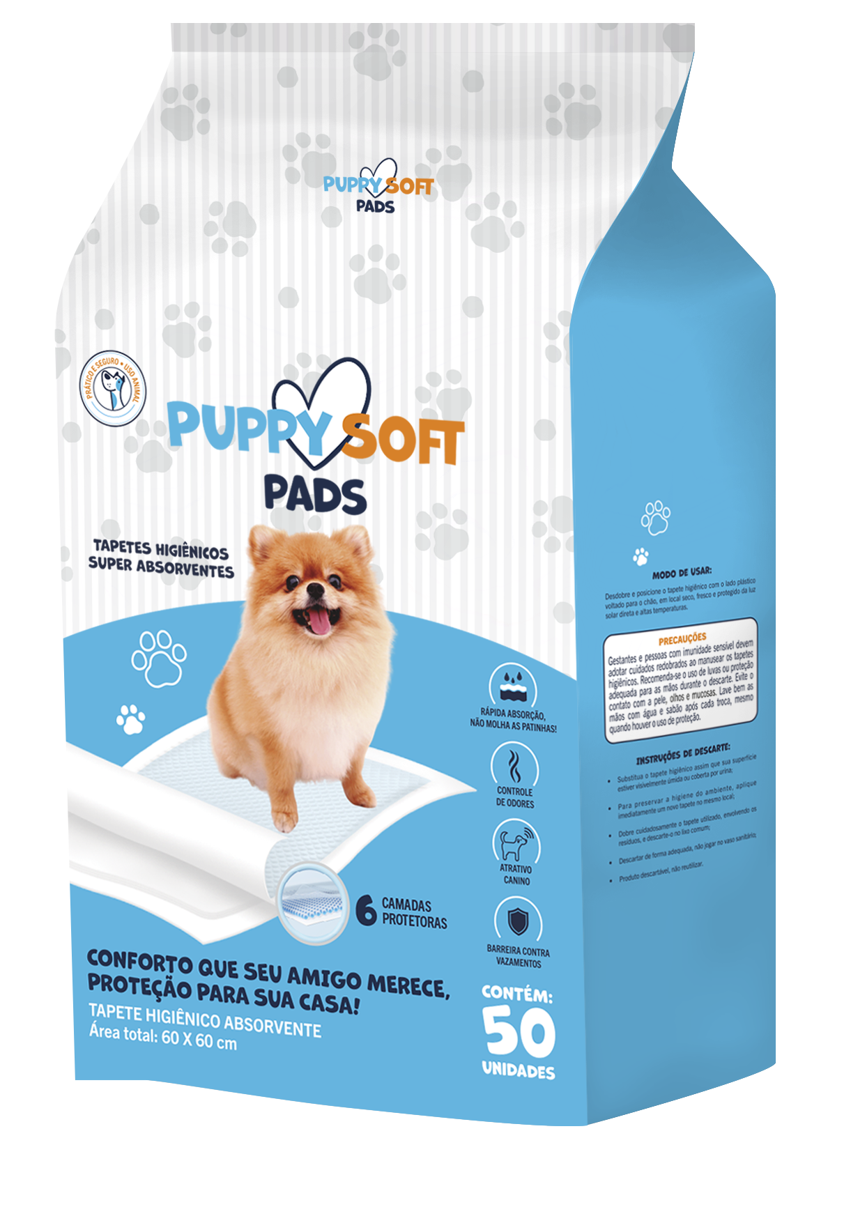 O tapete higiênico PUPPY SOFT PADS combina tecnologia e desempenho para oferecer máxima absorção, controle de odores e proteção contra vazamentos.